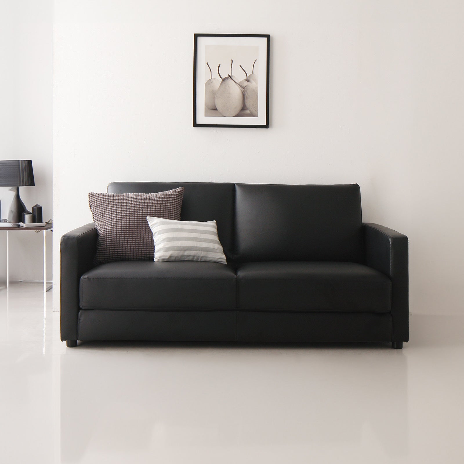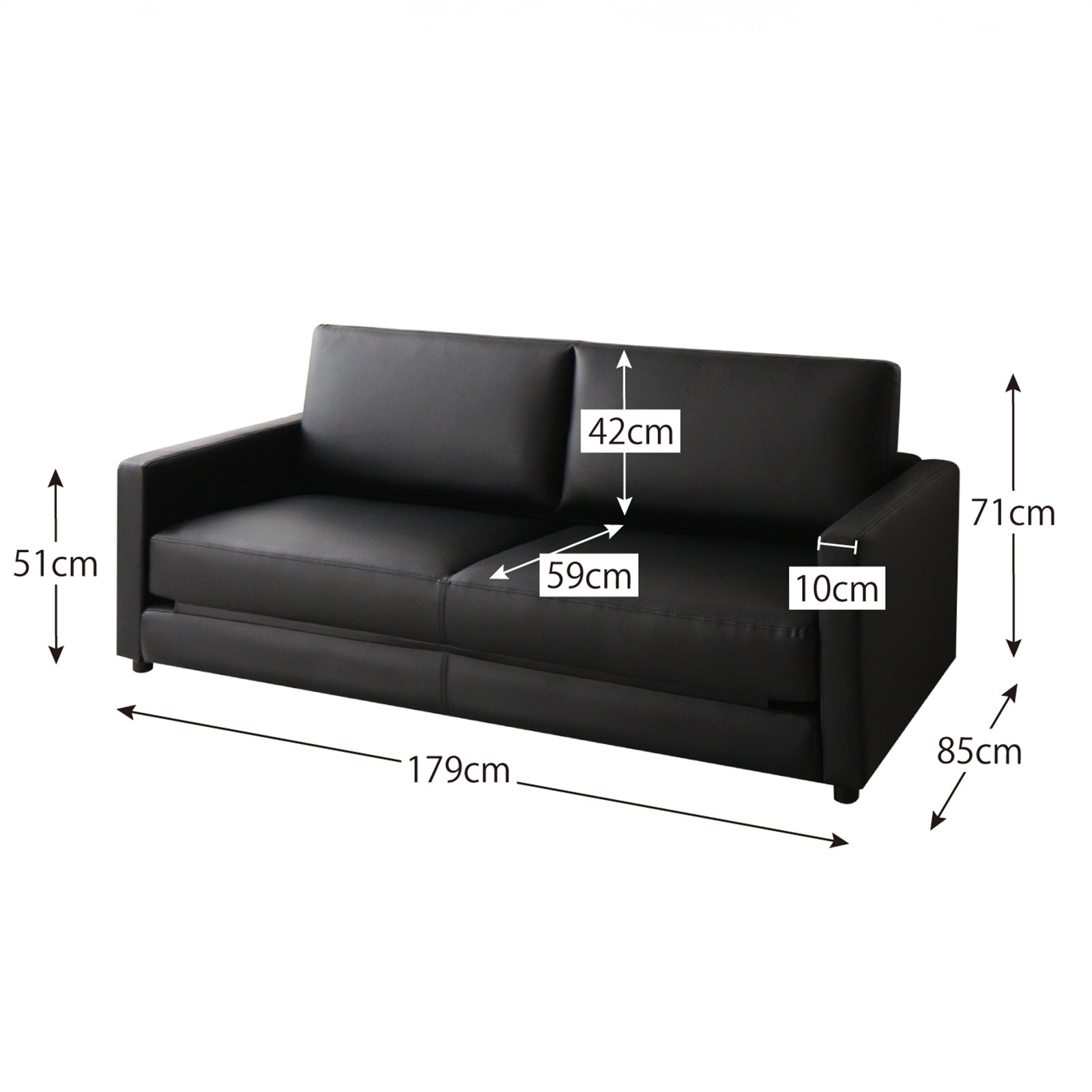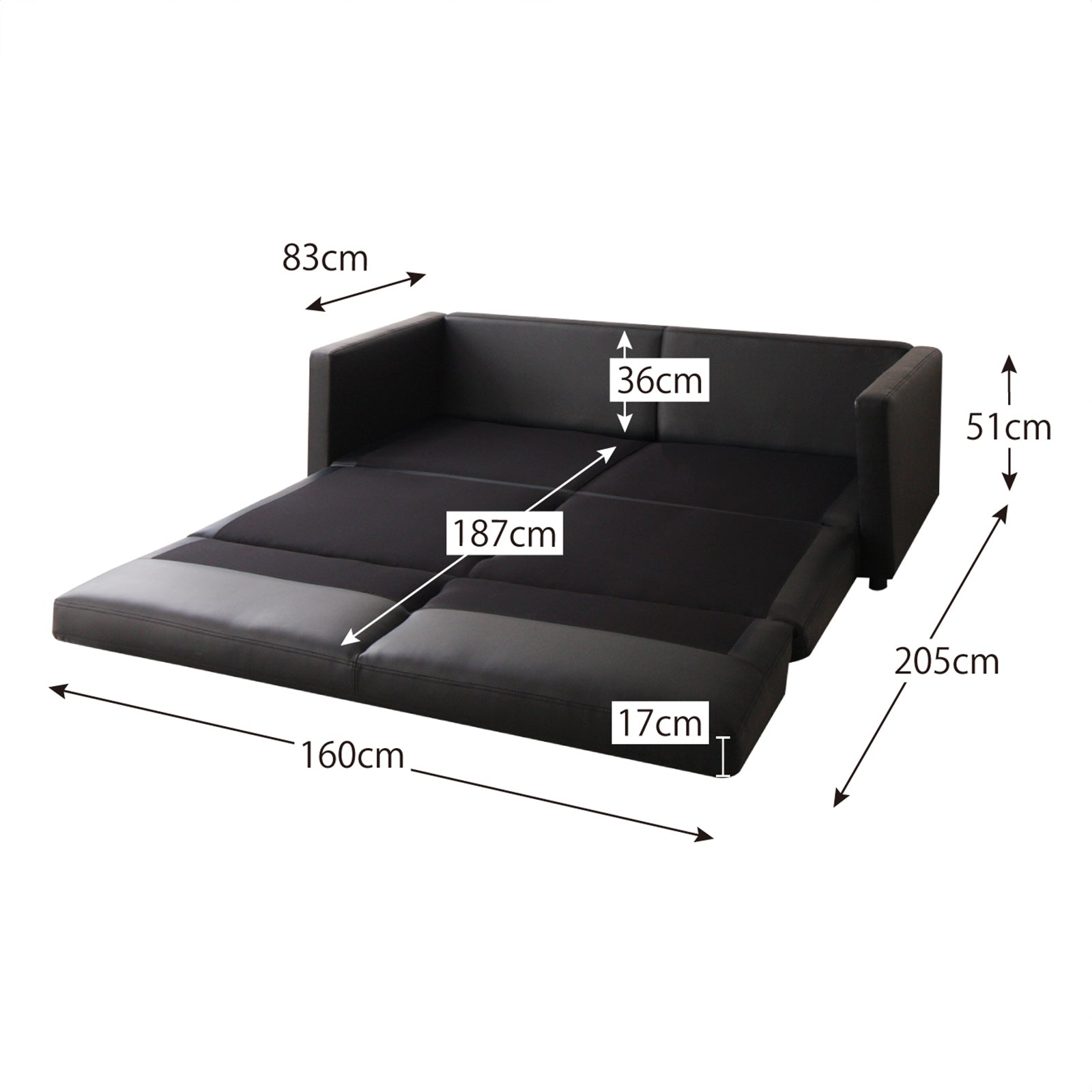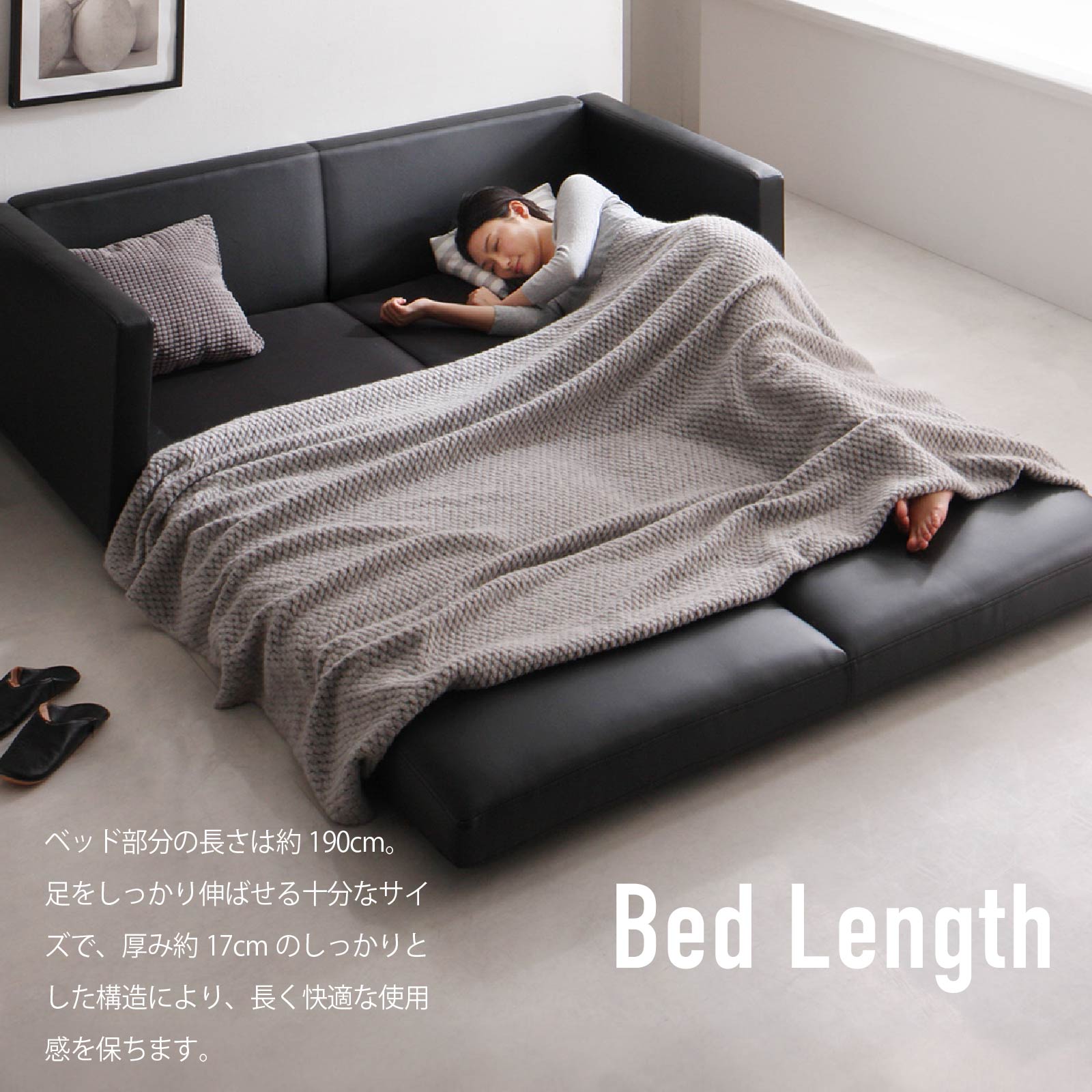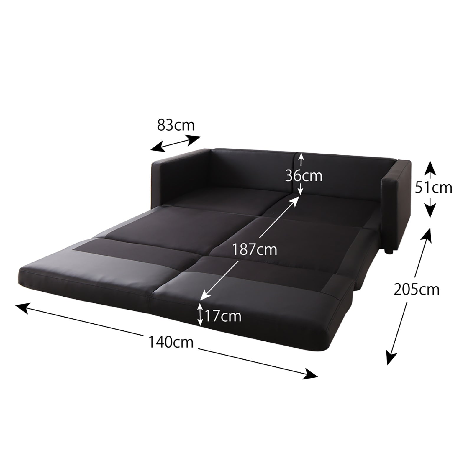 ソファとベッドの1台2役設計。ソファ時はコンパクトなサイズで、日本の住宅に最適。ベッドとして使用する際は、背もたれを引き出すだけで簡単に切り替え可能。軽量設計のため、女性でも楽に操作が可能。連結布テープを取り付けるだけで完成。